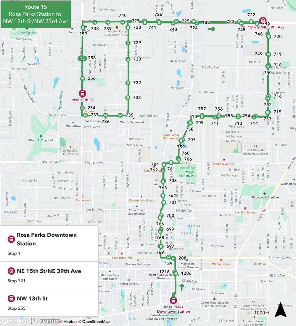 Route 15 Rosa Parks to NW 13th Street (at NW 23rd Ave)