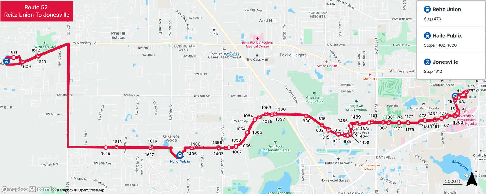 | Reitz Union | Haile Publix | Jonesville | Jonesville | Haile Publix | Reitz Union | ||